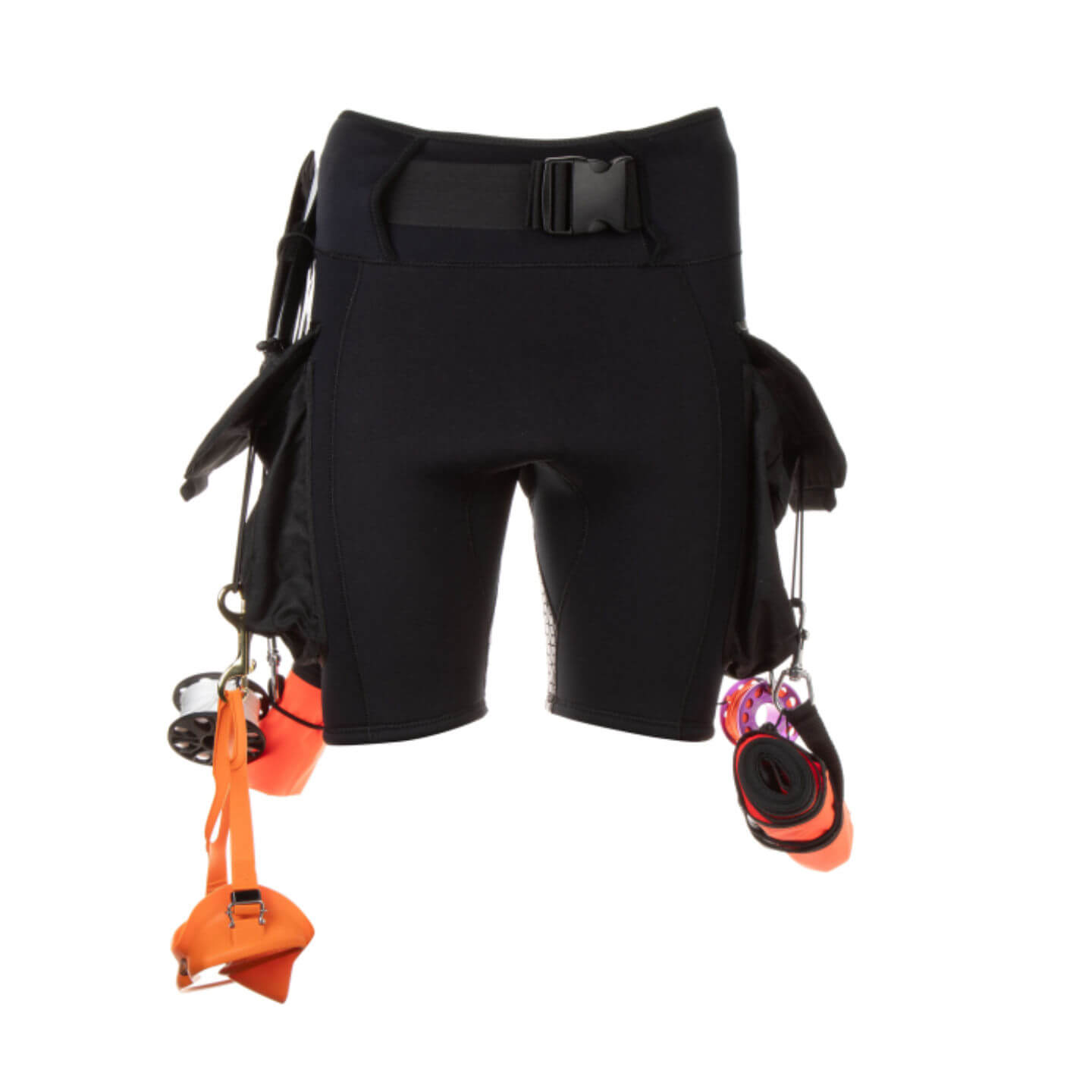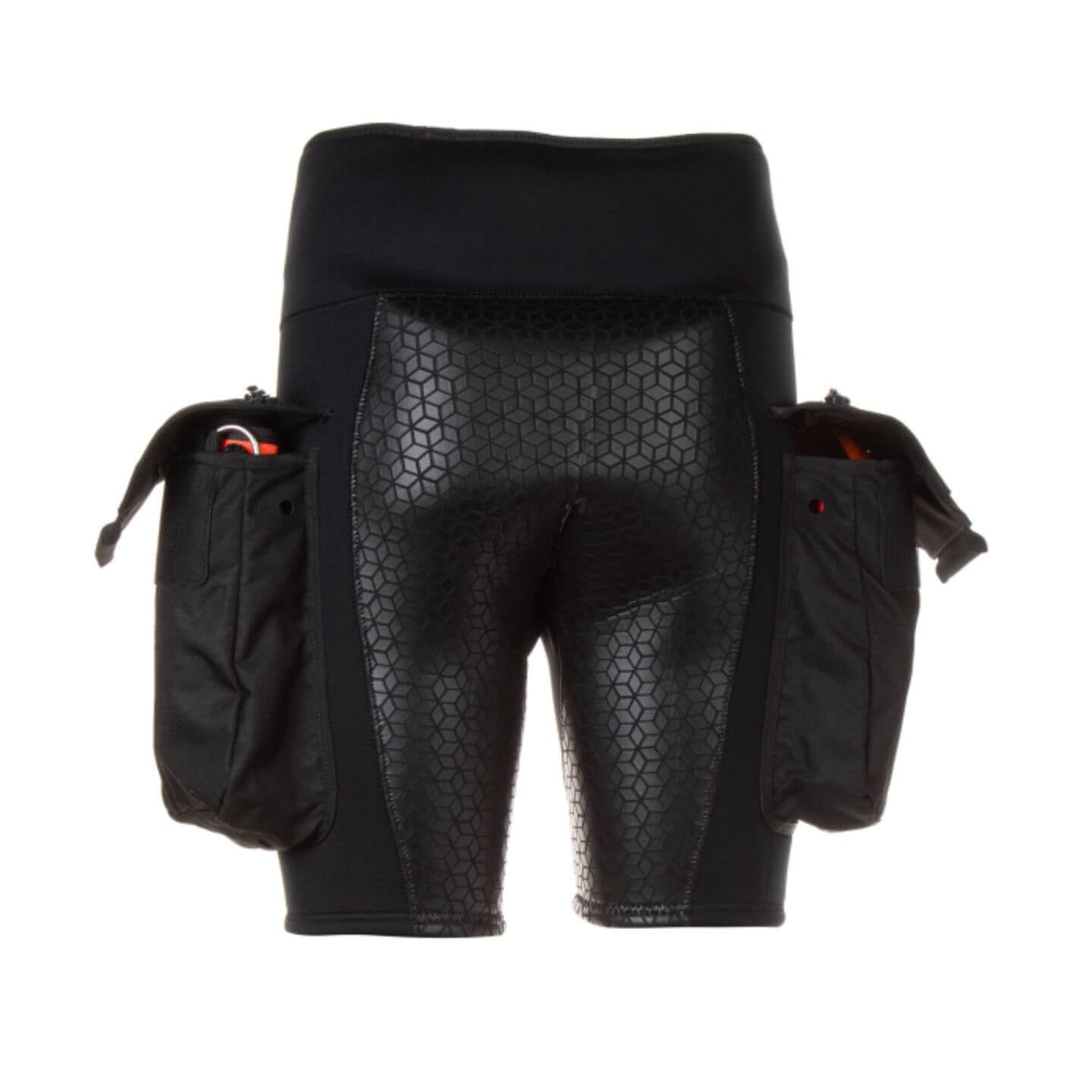 Gefertigt aus flexiblem 4 mm Neopren mit verstärktem Sitzbereich und hohem Bund, passen sich die Shorts optimal an den Körper an. Ein integrierter, verdeckter Gürtel hält sie auch bei voller Beladung sicher in Position.