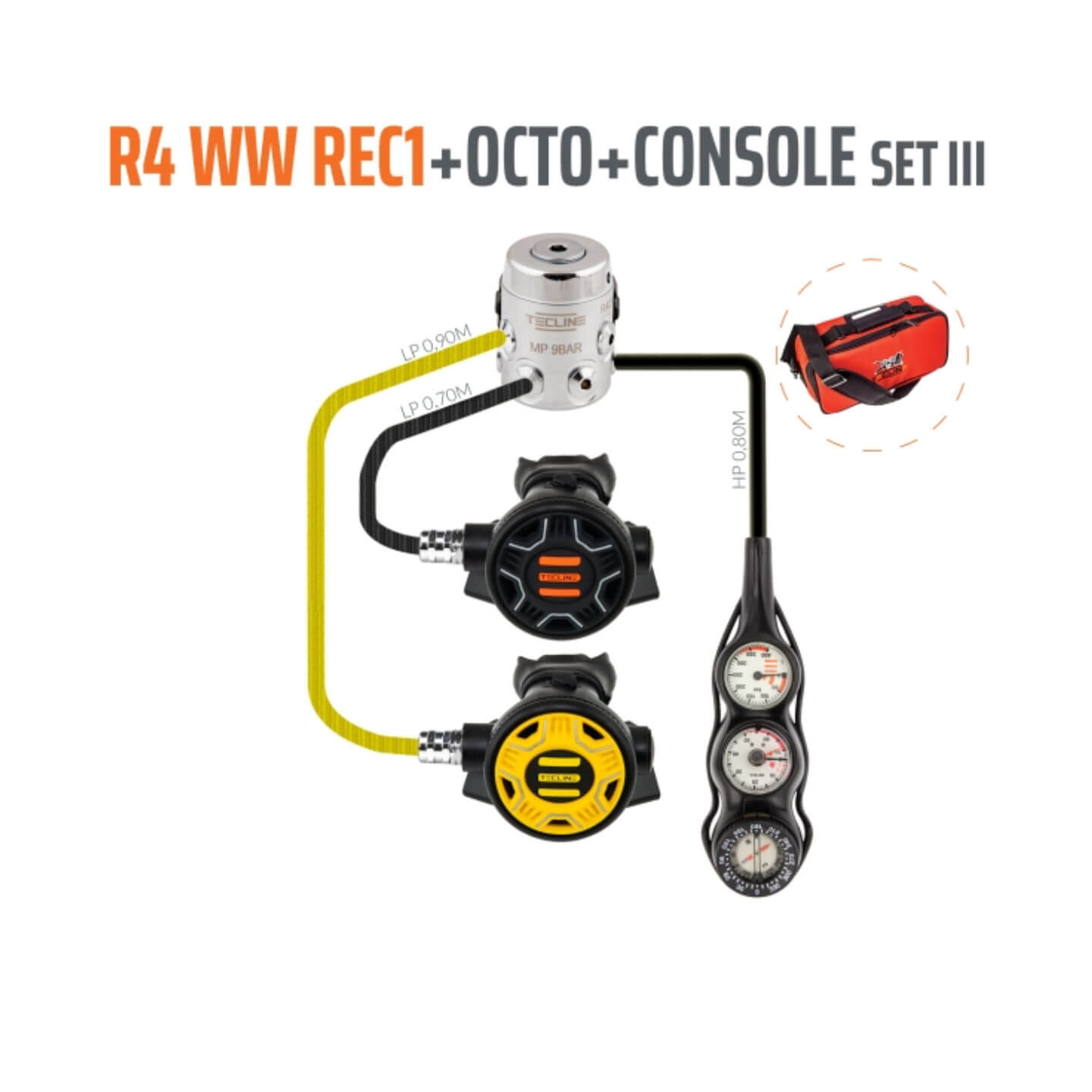 Die Tecline R4/WW Rec1 ist die perfekte Kombination für alle, die auf Reisen Wert auf geringes Gewicht und kompakte Ausrüstung legen. Die R4 WW ist die kleinste und leichteste 1. Stufe aus dem Hause Tecline. Sie ist nicht kaltwassertauglich und daher nicht für Wassertemperaturen unter 10 °C geeignet, bietet aber im Warmwasser eine hervorragende Performance. Durch den Verzicht auf eine Trockenkammer ist die R4 WW noch kleiner als die reguläre R4 und passt problemlos in jedes Fluggepäck.