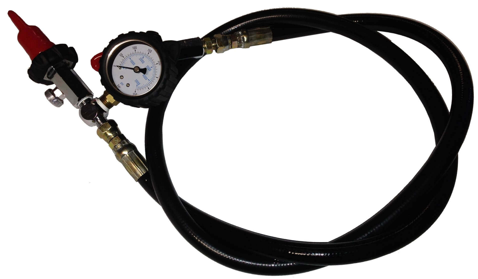 Robuster Füllschlauch mit Manometer (350 bar) und Ablassventil für max. 40 % Sauerstoffanteil, Länge 1,5 m