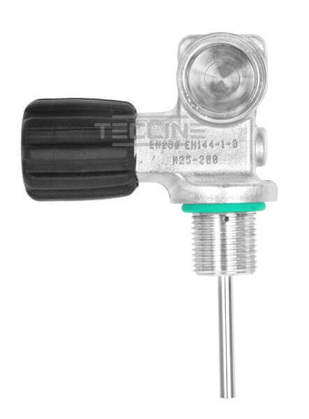 Einfaches Monoventil für Druckluftflaschen, M26*2-Gewinde und Handrad (Schwarz) auf der linken Seite. Für 232 bar, mit Steigrohr und O-Ring aus Viton. Nicht erweiterbar.