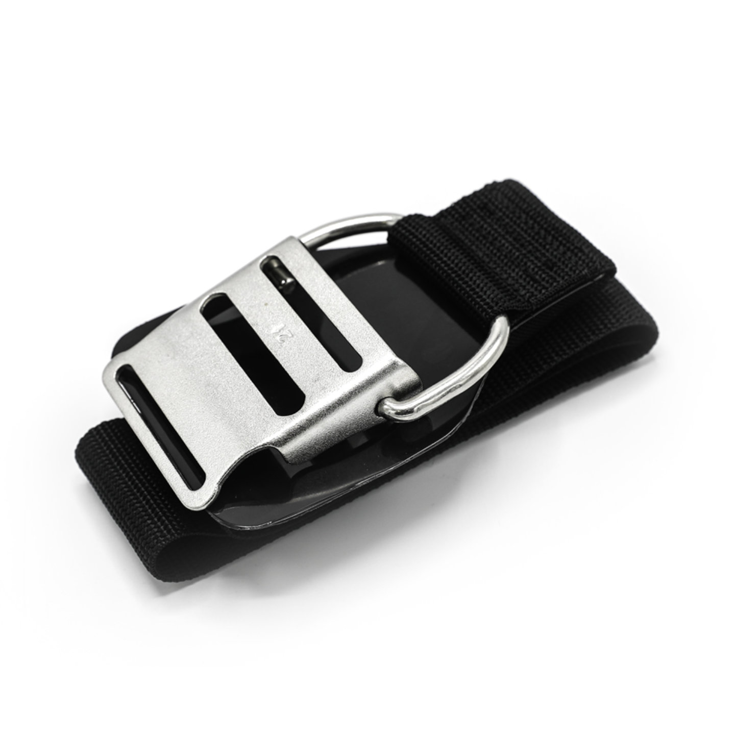 Bitte beachten: Für die Befestigung einer zusätzlichen Tarriergasflasche neben der Diluent- oder Sauerstoffflasche ist dieses Band zu kurz.