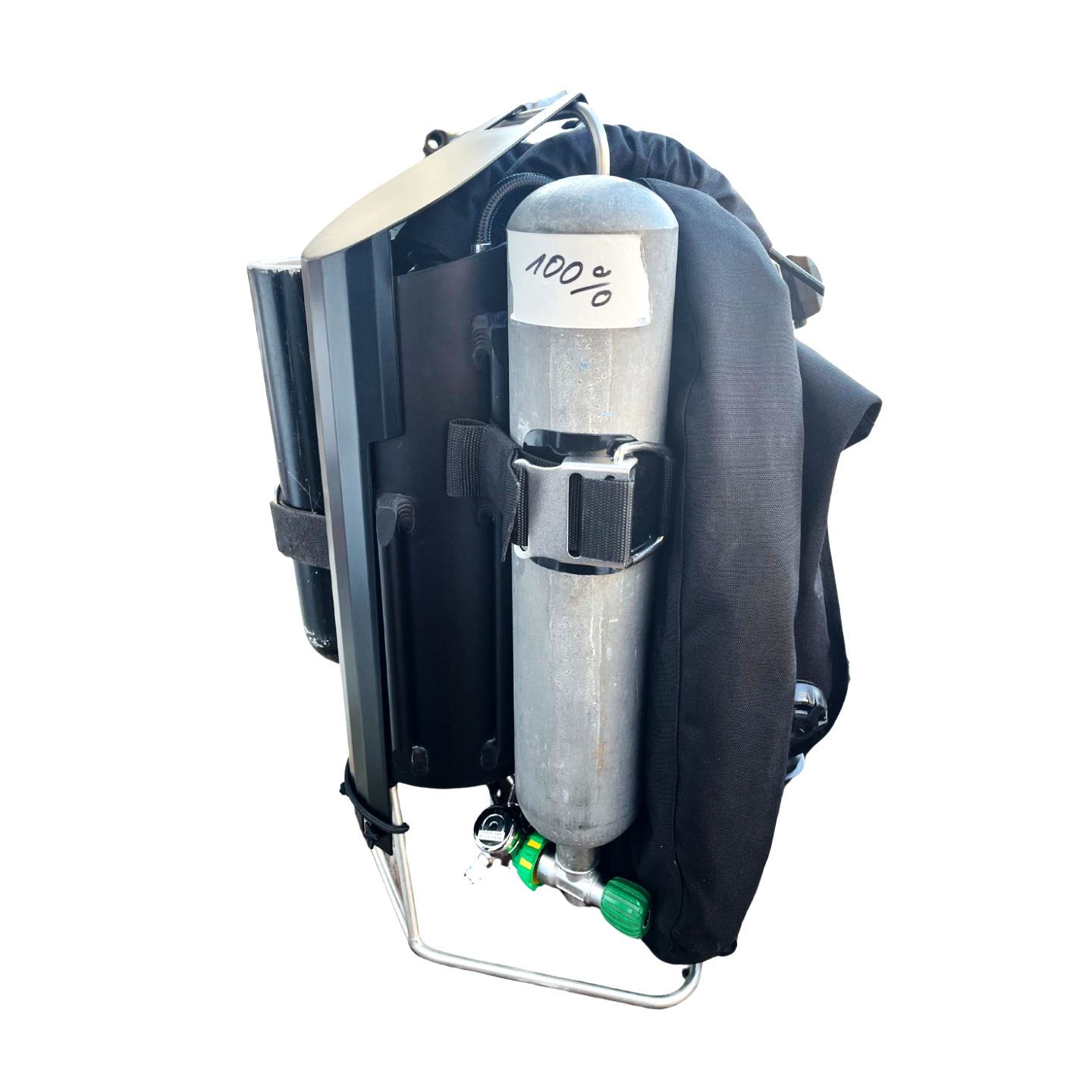 Das passgenaue Caveshield aus Aluminium wurde speziell für das JJ-CCR entwickelt und lässt sich nahtlos in nahezu jede Konfiguration integrieren. Durch präzise gefertigte Ausschnitte bietet es Platz für bis zu vier Flaschen und ermöglicht eine unkomplizierte Montage und Demontage – unabhängig davon, ob der Handgriff ein- oder ausgefahren ist.