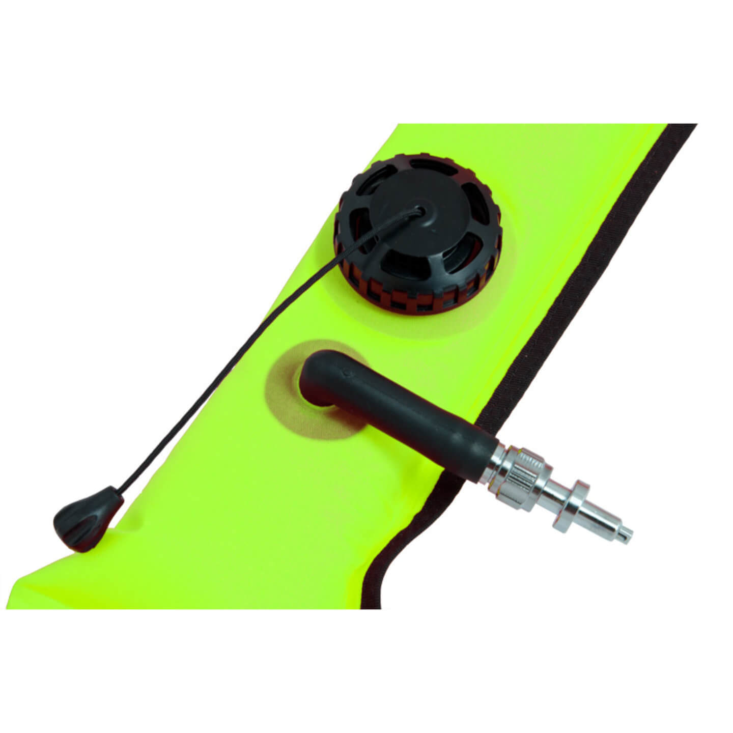- Ausgestattet mit einem metallenen Oral-Inflatorventil, lässt sich die Boje bequem per Mund oder via Inflator-Schlauch befüllen – robust und langlebig.