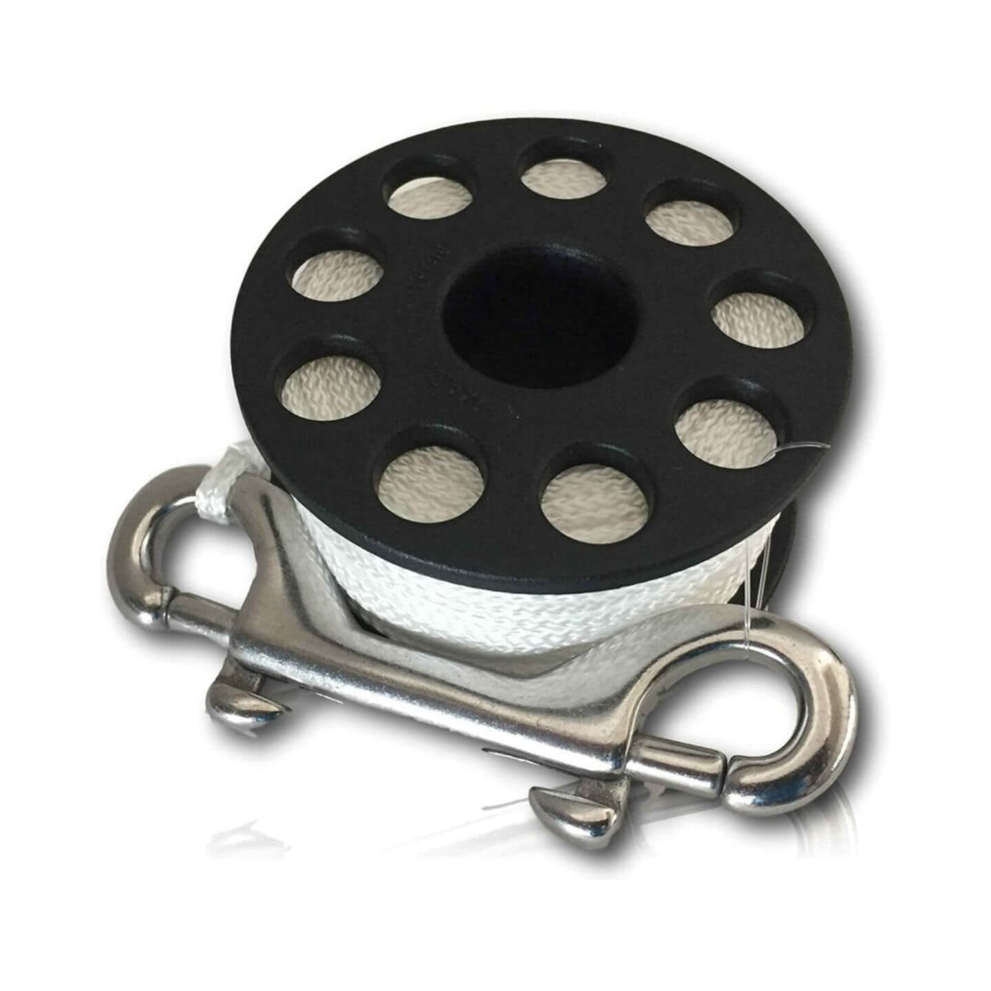 Ein kompaktes und zuverlässiges Hilfsmittel für technische Tauchgänge: Diese Tecline Spool mit 20 oder 30m Leine und einem 100 mm Messing-Doppelender ist ideal geeignet für SMBs Surface Marker Buoy.
